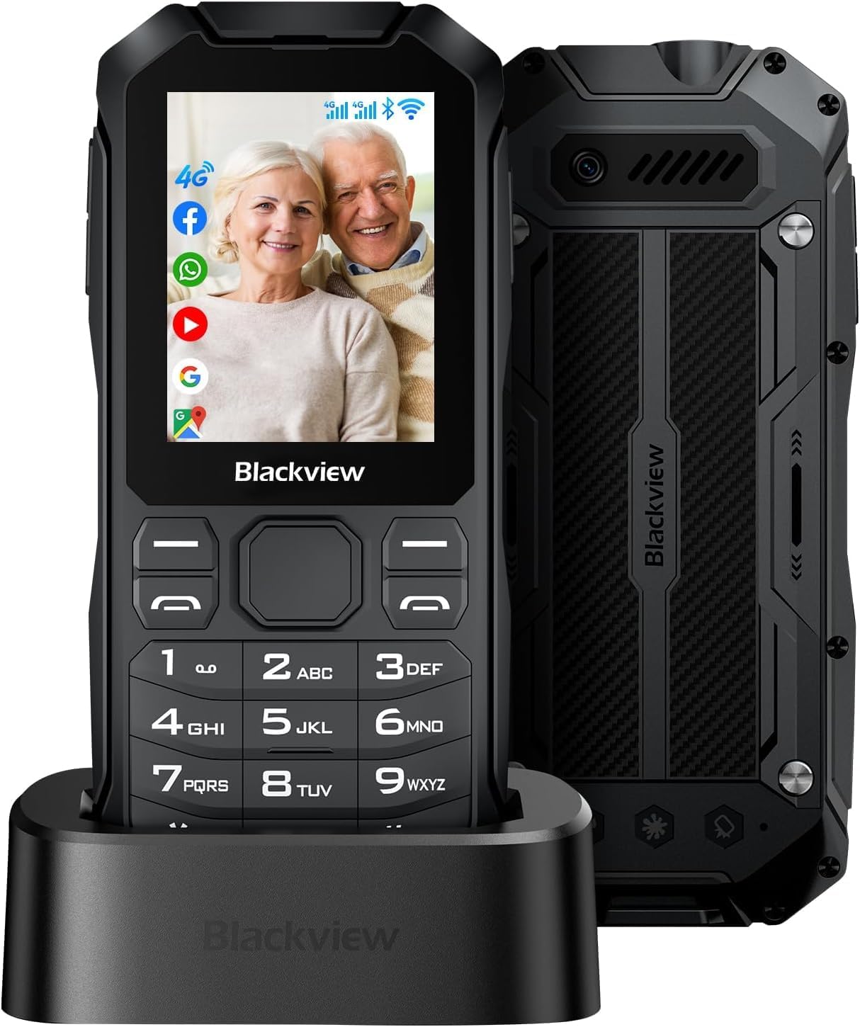 ది బ్లాక్view N1000 is a robust and user-friendly mobile phone, specifically designed for ease of use with its large buttons and clear 2.4-inch display. It features a durable build, including MIL-STD 810H certification and IP69 waterproofing, making it suitable for various environments. Key functionalities include dual SIM support, expandable memory, and an essential SOS emergency button for enhanced safety.