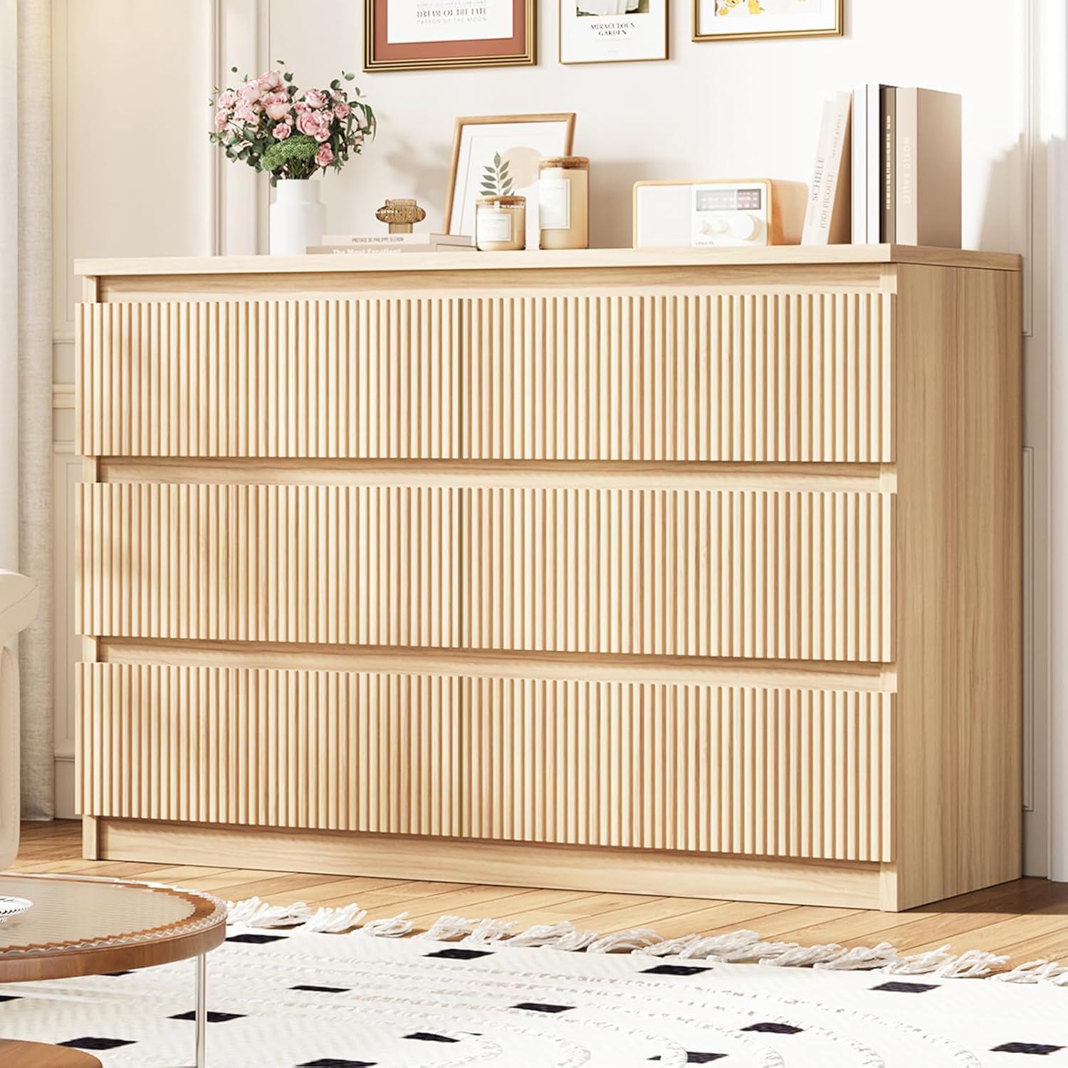 Image 1.1: The Jocoevol 6-Drawer Fluted Dresser, showcasing its natural wood finish and distinctive fluted panels.